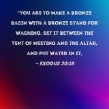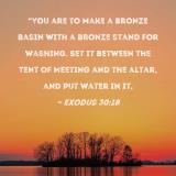 "You are to make a bronze basin with a bronze stand for washing. Set it between the Tent of Meeting and the altar, and put water in it,