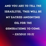 And you are to tell the Israelites, 'This will be My sacred anointing oil for the generations to come.