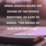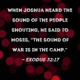 When Joshua heard the sound of the people shouting, he said to Moses, "The sound of war is in the camp."
