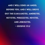 And I will send an angel before you, and I will drive out the Canaanites, Amorites, Hittites, Perizzites, Hivites, and Jebusites.