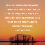 Then the LORD said to Moses, "Chisel out two stone tablets like the originals, and I will write on them the words that were on the first tablets, which you broke.