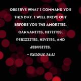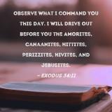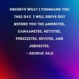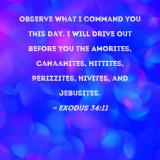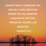 Observe what I command you this day. I will drive out before you the Amorites, Canaanites, Hittites, Perizzites, Hivites, and Jebusites.