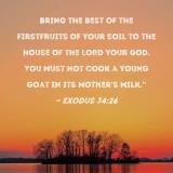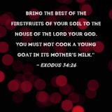 Bring the best of the firstfruits of your soil to the house of the LORD your God. You must not cook a young goat in its mother's milk."