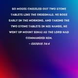 So Moses chiseled out two stone tablets like the originals. He rose early in the morning, and taking the two stone tablets in his hands, he went up Mount Sinai as the LORD had commanded him.