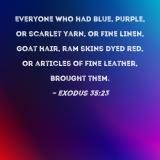 Everyone who had blue, purple, or scarlet yarn, or fine linen, goat hair, ram skins dyed red, or articles of fine leather, brought them.