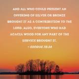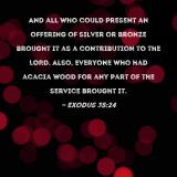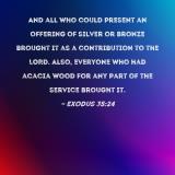 And all who could present an offering of silver or bronze brought it as a contribution to the LORD. Also, everyone who had acacia wood for any part of the service brought it.