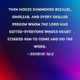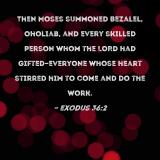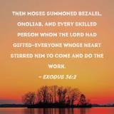 Then Moses summoned Bezalel, Oholiab, and every skilled person whom the LORD had gifted--everyone whose heart stirred him to come and do the work.