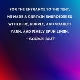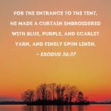 For the entrance to the tent, he made a curtain embroidered with blue, purple, and scarlet yarn, and finely spun linen,