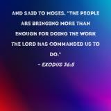 and said to Moses, "The people are bringing more than enough for doing the work the LORD has commanded us to do."