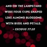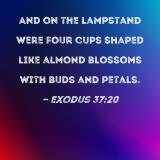 And on the lampstand were four cups shaped like almond blossoms with buds and petals.