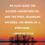 He also made the sacred anointing oil and the pure, fragrant incense, the work of a perfumer.