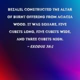 Bezalel constructed the altar of burnt offering from acacia wood. It was square, five cubits long, five cubits wide, and three cubits high.