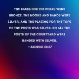 The bases for the posts were bronze, the hooks and bands were silver, and the plating for the tops of the posts was silver. So all the posts of the courtyard were banded with silver.