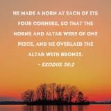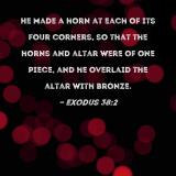 He made a horn at each of its four corners, so that the horns and altar were of one piece, and he overlaid the altar with bronze.