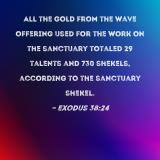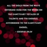 All the gold from the wave offering used for the work on the sanctuary totaled 29 talents and 730 shekels, according to the sanctuary shekel.
