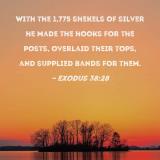 With the 1,775 shekels of silver he made the hooks for the posts, overlaid their tops, and supplied bands for them.