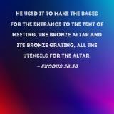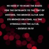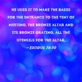 He used it to make the bases for the entrance to the Tent of Meeting, the bronze altar and its bronze grating, all the utensils for the altar,