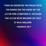 Then he inserted the poles into the rings on the sides of the altar for carrying it. He made the altar with boards so that it was hollow.