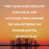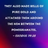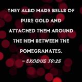 They also made bells of pure gold and attached them around the hem between the pomegranates,