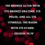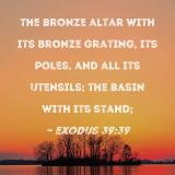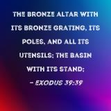 the bronze altar with its bronze grating, its poles, and all its utensils; the basin with its stand;