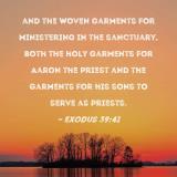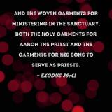 and the woven garments for ministering in the sanctuary, both the holy garments for Aaron the priest and the garments for his sons to serve as priests.