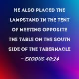 He also placed the lampstand in the Tent of Meeting opposite the table on the south side of the tabernacle