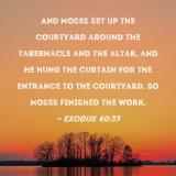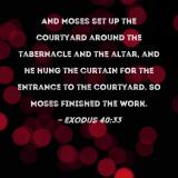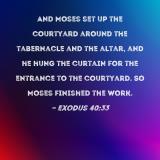 And Moses set up the courtyard around the tabernacle and the altar, and he hung the curtain for the entrance to the courtyard. So Moses finished the work.