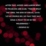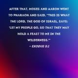 After that, Moses and Aaron went to Pharaoh and said, "This is what the LORD, the God of Israel, says: 'Let My people go, so that they may hold a feast to Me in the wilderness.'"