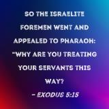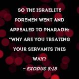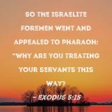 So the Israelite foremen went and appealed to Pharaoh: "Why are you treating your servants this way?