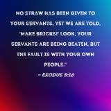 No straw has been given to your servants, yet we are told, 'Make bricks!' Look, your servants are being beaten, but the fault is with your own people."