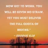 Now get to work. You will be given no straw, yet you must deliver the full quota of bricks."