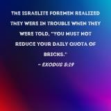 The Israelite foremen realized they were in trouble when they were told, "You must not reduce your daily quota of bricks."