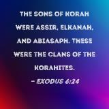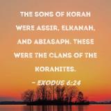The sons of Korah were Assir, Elkanah, and Abiasaph. These were the clans of the Korahites.