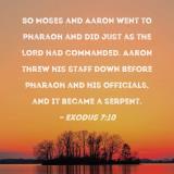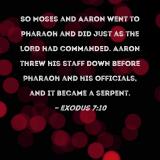 So Moses and Aaron went to Pharaoh and did just as the LORD had commanded. Aaron threw his staff down before Pharaoh and his officials, and it became a serpent.