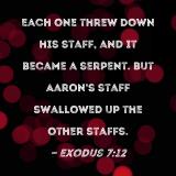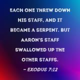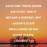 Each one threw down his staff, and it became a serpent. But Aaron's staff swallowed up the other staffs.