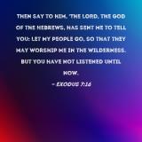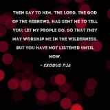 Then say to him, 'The LORD, the God of the Hebrews, has sent me to tell you: Let My people go, so that they may worship Me in the wilderness. But you have not listened until now.