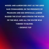 Moses and Aaron did just as the LORD had commanded; in the presence of Pharaoh and his officials, Aaron raised the staff and struck the water of the Nile, and all the water was turned to blood.