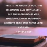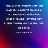 "This is the finger of God," the magicians said to Pharaoh. But Pharaoh's heart was hardened, and he would not listen to them, just as the LORD had said.