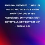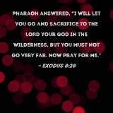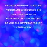 Pharaoh answered, "I will let you go and sacrifice to the LORD your God in the wilderness, but you must not go very far. Now pray for me."