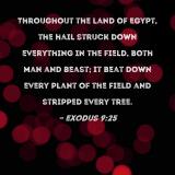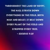 Throughout the land of Egypt, the hail struck down everything in the field, both man and beast; it beat down every plant of the field and stripped every tree.