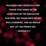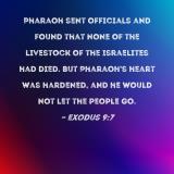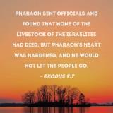 Pharaoh sent officials and found that none of the livestock of the Israelites had died. But Pharaoh's heart was hardened, and he would not let the people go.