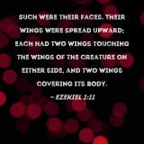 Such were their faces. Their wings were spread upward; each had two wings touching the wings of the creature on either side, and two wings covering its body.