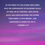 In the midst of the living creatures was the appearance of glowing coals of fire, or of torches. Fire moved back and forth between the living creatures; it was bright, and lightning flashed out of it.