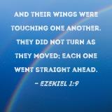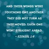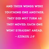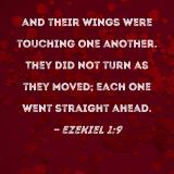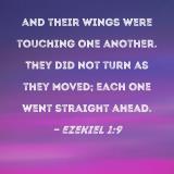 and their wings were touching one another. They did not turn as they moved; each one went straight ahead.