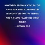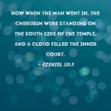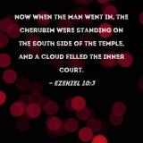 Now when the man went in, the cherubim were standing on the south side of the temple, and a cloud filled the inner court.