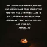 Then one of the cherubim reached out his hand and took some of the fire that was among them. And he put it into the hands of the man clothed in linen, who received it and went out.