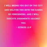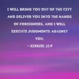 I will bring you out of the city and deliver you into the hands of foreigners, and I will execute judgments against you.