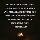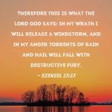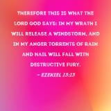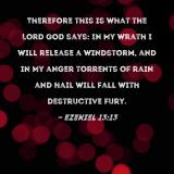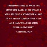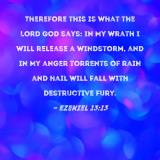 Therefore this is what the Lord GOD says: In My wrath I will release a windstorm, and in My anger torrents of rain and hail will fall with destructive fury.