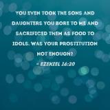 You even took the sons and daughters you bore to Me and sacrificed them as food to idols. Was your prostitution not enough?