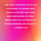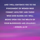 And I will sentence you to the punishment of women who commit adultery and those who shed blood; so I will bring upon you the wrath of your bloodshed and jealousy.
